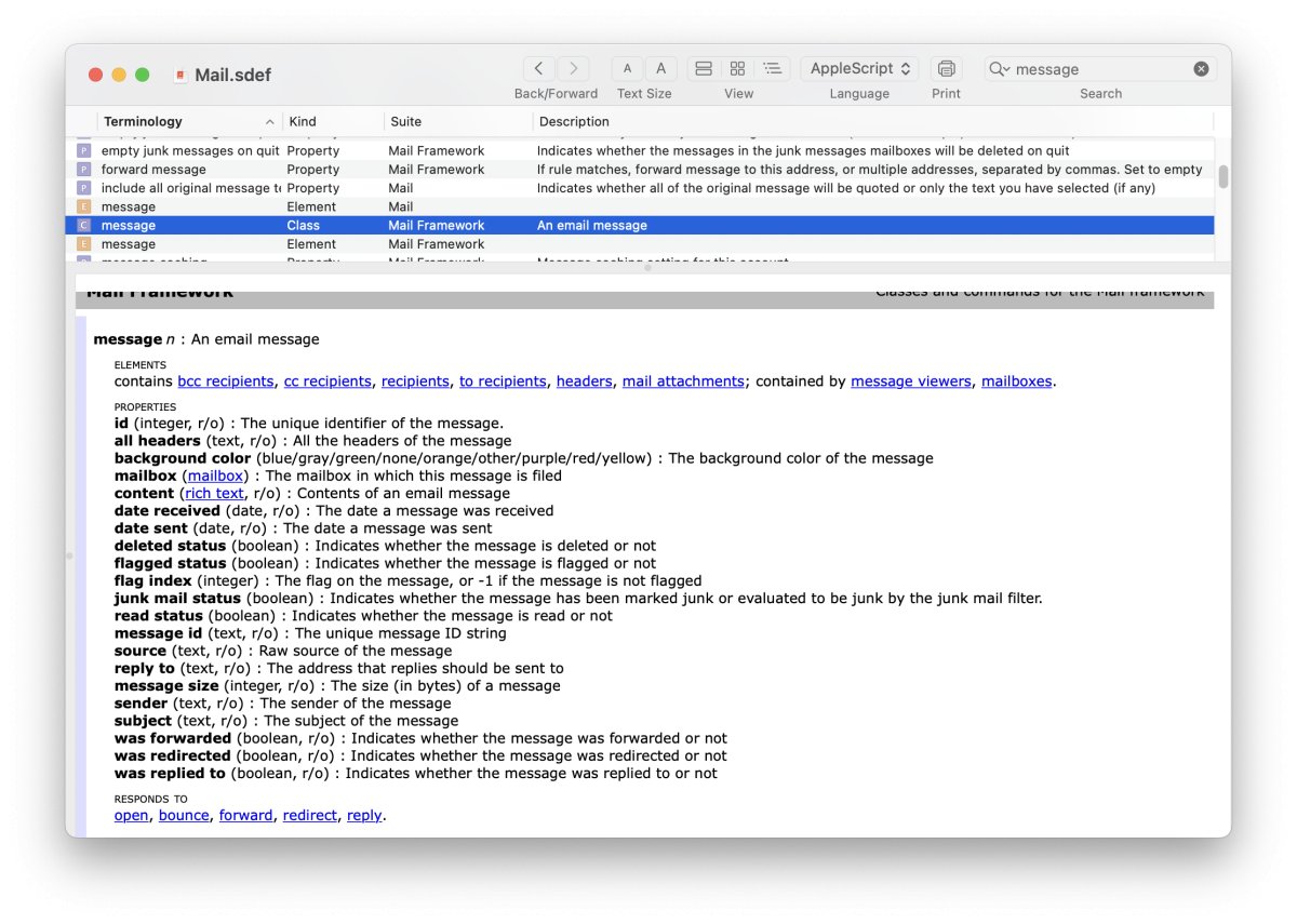 Mail easily gets confused with counting emails. Sometimes there is an email that is unread that I can't locate. In the AppleScript dictionary I see another property for message with the name of "read status". The property is a boolean and so it can have to values of true and false.