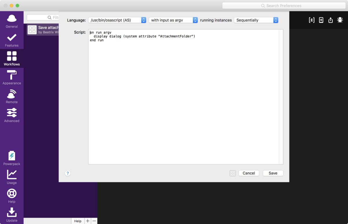- The hard part of the work was done with the AppleScript to save attachments in Mail.